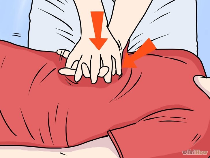 (5)實施胸部按壓。徑直向下按壓約2英寸(5厘米)。繼續(xù)如此操作,保持每分鐘100下以上。