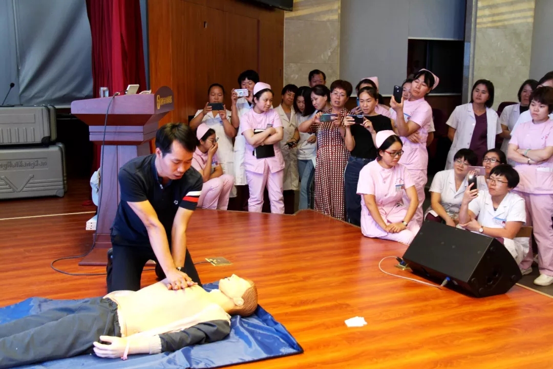 10.1日,我院特邀鄭州市中心醫(yī)院急救專家侯國(guó)軍對(duì)全員進(jìn)行心肺復(fù)蘇、海姆立克急救法(小兒異物吸入)等急救技能培訓(xùn),全院醫(yī)務(wù)工作者、行政后勤人員共400余人參加培訓(xùn)。