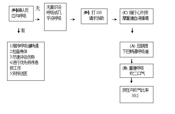 拍傷患肩部并大聲呼叫他‘張開眼睛’,同時檢查有無呼吸,如無反應(yīng)進(jìn)行下一步驟。