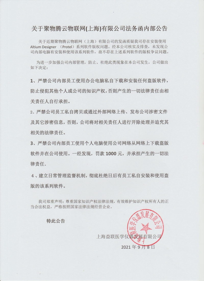->關(guān)于聚物騰云物聯(lián)網(wǎng)(上海)有限公司法務(wù)函的內(nèi)部通告