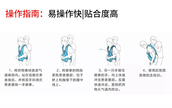 救援培訓(xùn)專用窒息梗塞急救實(shí)訓(xùn)穿戴馬甲,可有效避免因窒息急救不及時(shí)導(dǎo)致生命安全受到傷害。防窒息急救教育和實(shí)訓(xùn)的時(shí)候,穿戴在學(xué)員身上,針對(duì)異物造成的呼吸氣道堵塞狀況時(shí),練習(xí)腹部按壓(即海姆立克手法),做出正確步驟處理,擠出堵塞氣道異物(異物塞).直觀的教學(xué)模式給學(xué)員帶來(lái)自信和應(yīng)用實(shí)效。模擬者可采用站姿、坐姿、用教具或借助柜臺(tái)、桌椅,實(shí)習(xí)體驗(yàn)窒息自救、急救、達(dá)到救人一命的教學(xué)目的。