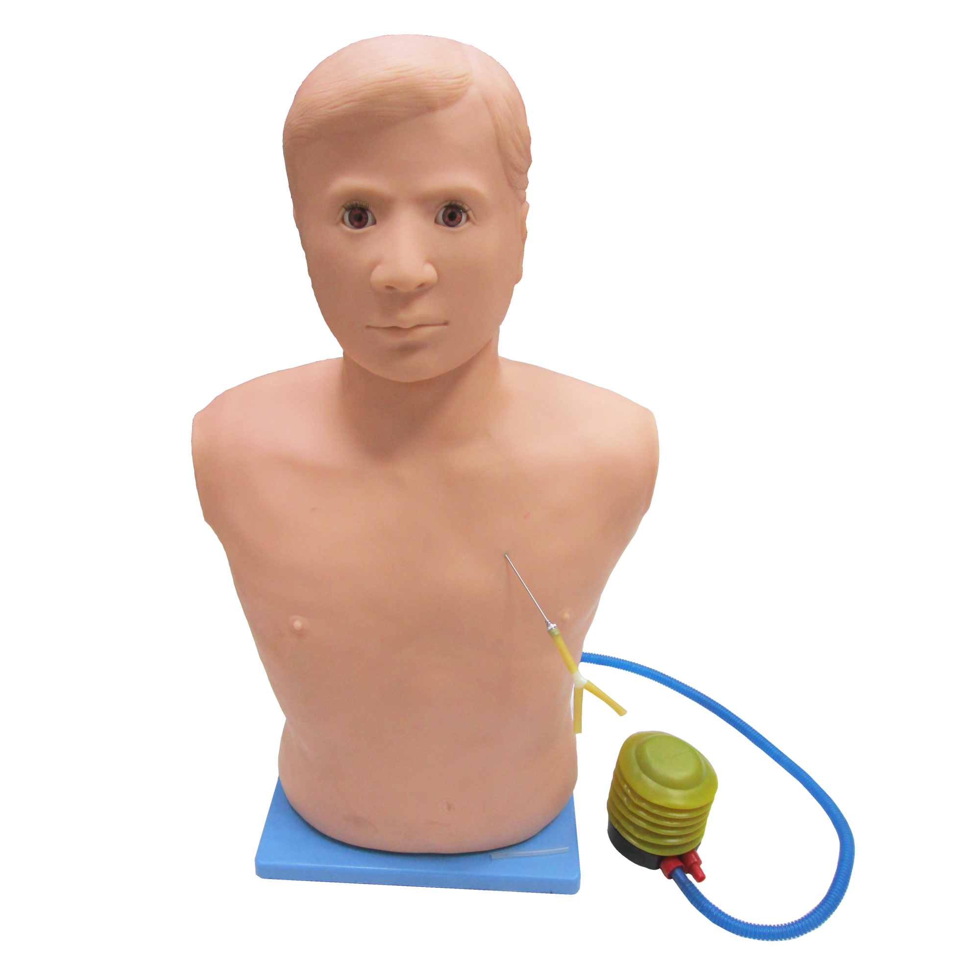 1、 模型為半身男性結(jié)構(gòu)、具有解剖學(xué)特征,可進(jìn)行氣胸減壓的練習(xí)。